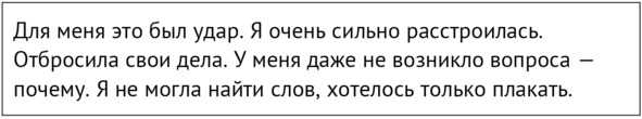 Мои предположения подтвердились: с Ольгой мне было намного проще общаться, чем с предыдущим психологом. Она в тот период тоже проходила бракоразводный процесс, и ее дочке было столько же лет, сколько и моему сыну. С первой же сессии я ощутила взаимопонимание и подумала, что все сложилось так, как нужно. Хорошо, что предыдущий психолог ушел. И хорошо, что я после этого не потеряла доверие к психологам и решилась дать себе еще один шанс на терапию. С того момента я проходила регулярную терапию с Ольгой больше двух лет, пока не почувствовала, что полностью восстановилась. А сама Ольга за это время успела развестись и снова выйти замуж по любви. Я до сих пор наблюдаю за ней и радуюсь тому, что она показала пример того, чему научила меня.