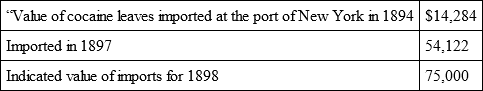 “In these simple figures are contained the elements of a warning sermon that would startle all America. We seem to be rapidly becoming a nation of cocaine fiends. If the number of those addicted to the use of the dreadful drug continues to increase at the present rate, the importation of what was originally regarded as a blessed alleviation of pain, will have to be classed with opium, and its use prohibited by law, except for medicinal purposes.