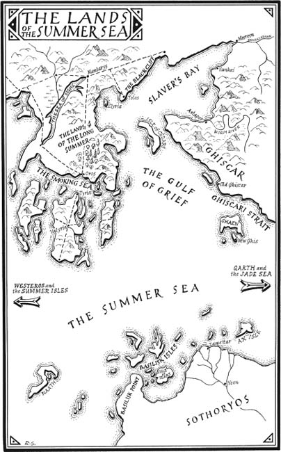 The gods gave no answer. After a while, the smoke ceased to rise as well. Already the little hut was growing colder. Varamyr had no flint, no tinder, no dry kindling. He would never get the fire burning again, not by himself. “Thistle,” he called out, his voice hoarse and edged with pain. “Thistle!”