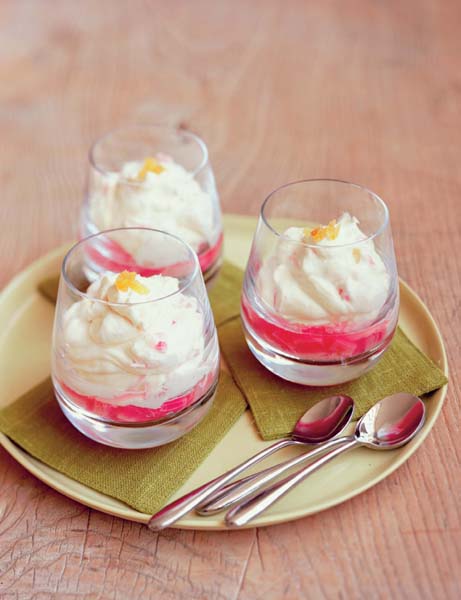 When the mixture has cooled, remove 2 tablespoonfuls to a separate bowl and mash with a fork. In another bowl, whip the mascarpone and cream together with the icing sugar and when the mixture forms soft peaks, fold in the mashed rhubarb and ginger mixture.