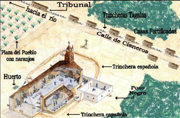 В тот день мы обнаружили исчезновение местных служащих госпиталя, капрала Альфонсо Сус Фохаса и рядового Томаса Паладио Паредеса, а также моего слуги Вильядиего и рядового -испанца Фелипе Эрреро Лопеса. Той ночью мы заперлись в церкви с Вигилем, монахом Гомесом Карреньо и военно-политическим губернатором, чья власть исчезала, как дым.