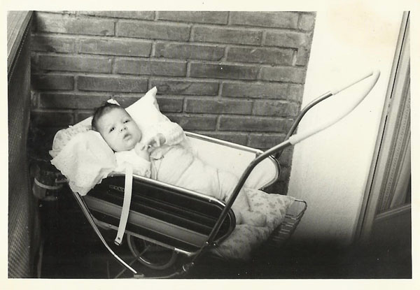 Mis padres todavía no son capaces de asegurar que el moñito de adorno que se aprecia en la cabeza era de mi hermana o correspondía al pico de la almohada del carrito. Las apuestas siguen abiertas, hagan la suya. No crean, cada año se abre un debate en casa, pero las pruebas son las mismas, una fotografía sin fecha y sin indicaciones tomada en la terraza.