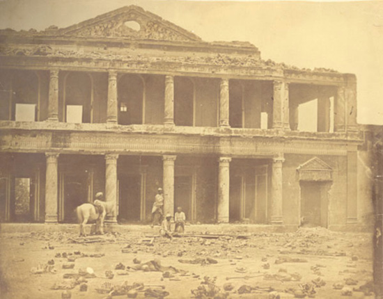 Si Fenton es el protagonista de la guerra de Crimea, el levantamiento cipayo de 1857 tiene como fotógrafo a Felice Beato (1833 o 1834-1907), que ya sí muestra cadáveres de soldados —observen cómo se las gastaron los británicos en el Secundra Bagh y el Fuerte Taku— como James Robertson un poco antes en la caída de Sebastopol, claros antecedentes de la Guerra de Secesión. En la Segunda Guerra del Opio, Beato fechó las imágenes y las relacionó, es lo que se denomina narrativa de la batalla, que no se había hecho hasta entonces. Las fotografías resultantes fueron una poderosa representación del triunfo militar del poder imperialista británico, y así se consideraron por los compradores de las imágenes, en su mayoría soldados británicos destinados en la región, administradores coloniales, comerciantes y turistas. En el Reino Unido, las fotografías se utilizaron para justificar la guerra y brindaron conocimiento al público sobre la cultura que existía en Oriente.