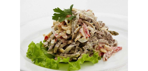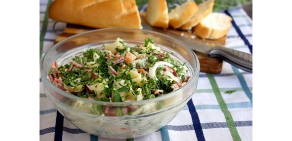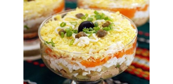 Способ приготовления: Салат укладывать слоями, промазывая каждый слой майонезом: