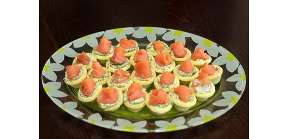 Способ приготовления: Яйцо и сёмгу нарезать небольшими кубиками, лук нашинковать. Все перемешать и заправить майонезом. Полученной смесью наполнить тарталетки.