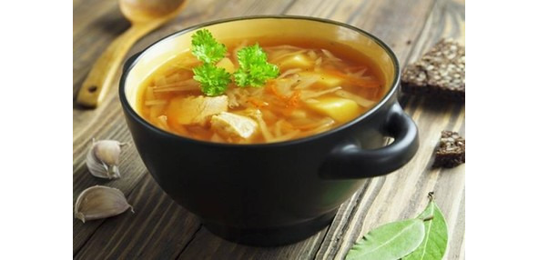 Способ приготовления: Сварить мясной бульон. Положить в суповую кастрюлю квашеную капусту. Если капуста очень кислая, необходимо предварительно ее промыть и отжать. Добавить 1—1,5 стакана воды, немного растительного масла, затем накрыть кастрюлю и тушить около часа.