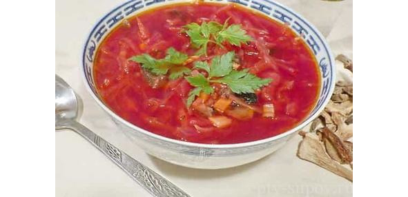 Для подкрашивания борща можно сделать свекольный настой. Для этого одну свеклу нарезать ломтиками, залить стаканом горячего бульона, добавить чайную ложку уксуса, поставить на 10—15 минут на слабый огонь и довести до кипения. После этого настой процедить и влить в борщ перед подачей на стол.