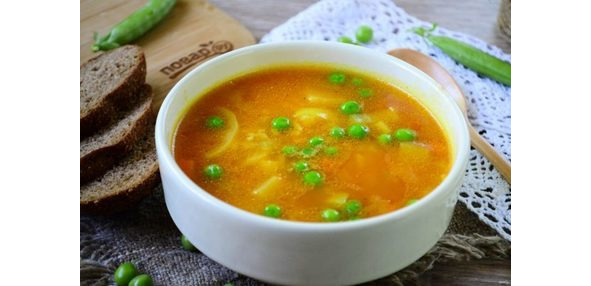 Способ приготовления: Сварить мясной бульон. Горох промыть в холодной воде, а затем замочить в кипятке на 20 минут. Далее горох освободить от воды, положить его в бульон и варить около 1.5 часов.