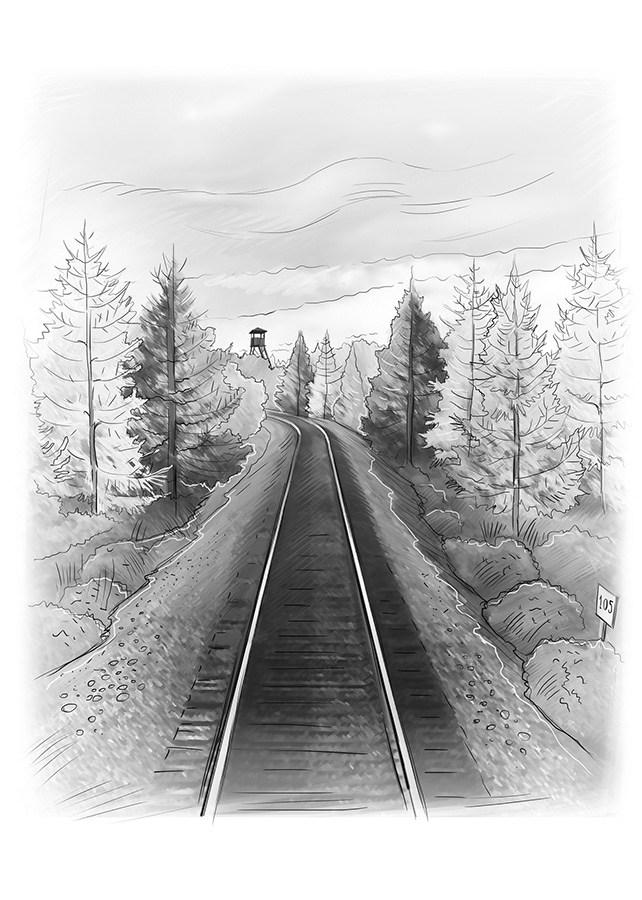 Алла шла медленно. Она аккуратно ступала на каждую шпалу. На той части моста, который был над самой речкой, между шпалами были дыры, сквозь которые было видно текущую в речке темную воду. Когда она, наконец, перешла на другую сторону, то поставила чемодан на землю и вернулась за сыном, взяла его за руку и повела медленно за собой.