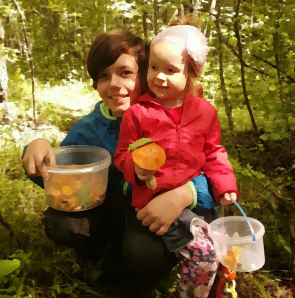 Второй день Маша с Платоном снабжают нас грибами. Вчера в дождь, под зонтом они ходили в лес на разведку и принесли свой первый улов. Далеко ходить не надо, лес прямо за калиткой.