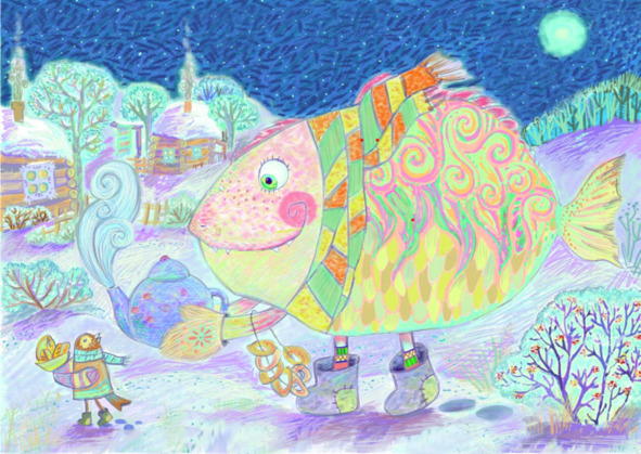 Рыбка чайничек несёт,Птичка пироги печёт.Зимней ночью вдруг приснитсяВам такая небылица.Может поздно спать легли?Может вы занемогли?Может, был тяжёлым ужин?Вам режим постельный нужен!Что вы, что вы! Этой ночьюПод покровом темнотыПровожать собрались зимуЗайцы, белки и кроты.Затопили печь в избушкеНа окраине села.Птицы, рыбы и зверушкиВеселились до утра.Крот растягивал баян,Зайцы били в барабан.Разливала рыба чай:– Угощайся, не скучай!– Ножки чтоб не застудить,Надо в валенках ходить, —Объясняла тётя рыба,Если слышать вы могли бы.Чай с малиной подавала,Непрерывно говоря.Полная луна сиялаЯрко вместо фонаря.Я проснулся утром – что же?На дворе уже весна!Я здоров, и не похоже, что болел я.Мысль ясна.Это всё мне не приснилось,Ведь на том пиру я был!Посмотрите – вот варенье!И кто-то валенки забыл!Чьей рукою стих писался?Не рукою, а пером!Старый Филин постарался.С добрым утром! Светлым днём!
