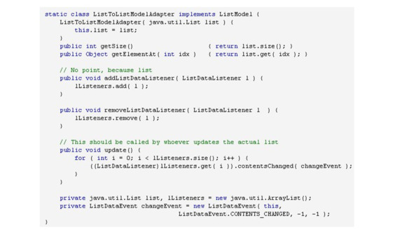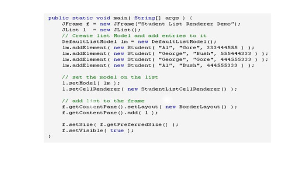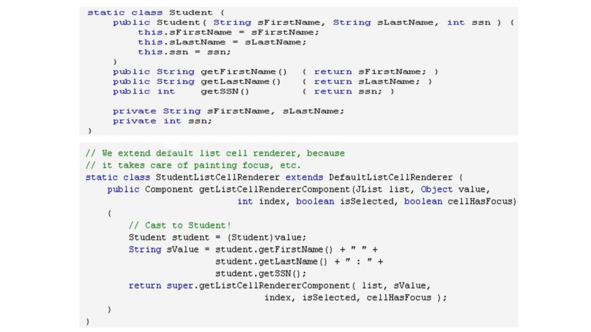 Например, JList позволяет пользователю определить ListCellRenderer, который является небольшим классом, который заботится о том, как конкретный элемент списка будет визуализирован.