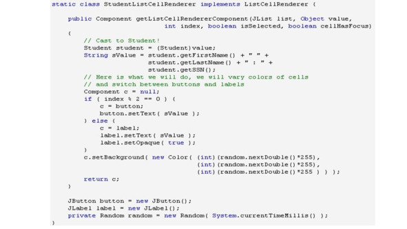 Еще одно преимущество, которое мы получаем от использования объекта ListCellRenderer, заключается в том, что мы можем представлять разные ячейки по-разному.