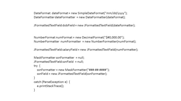 Мы можем создать компонент JFormattedTextField с помощью объекта форматирования.
