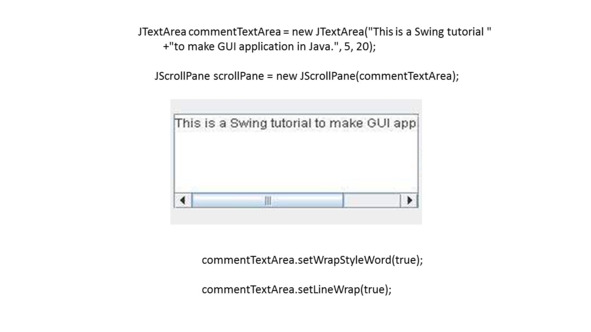 По умолчанию компонент JTextArea не обеспечивает возможность прокрутки большого текста.