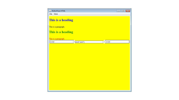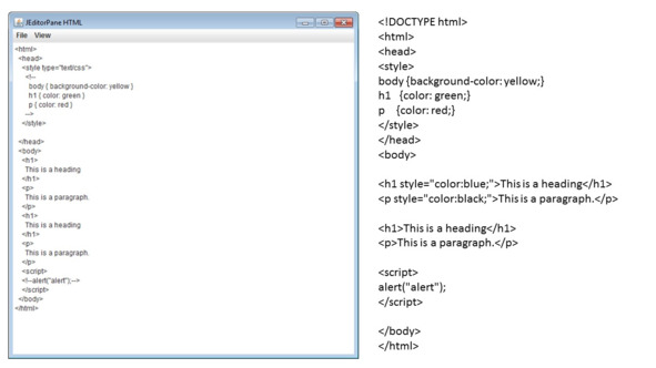В случае HTML, компонент JEditorPane может отображать HTML-документ, соответствующий спецификации Html 3.2 с ограниченной поддержкой css и без поддержки Javascript.