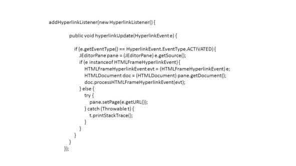 При отображении HTML-документа, компонент JEditorPane может обнаруживать HTML-ссылки и отвечать на клики пользователей.