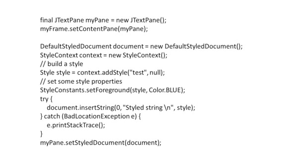 Реализация DefaultStyledDocument позволяет легко добавить новые стили методом addStyle.