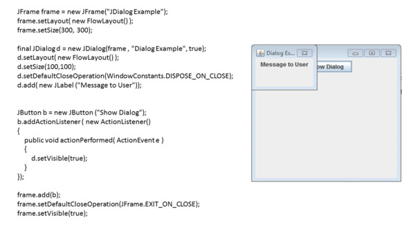 Каждое диалоговое окно обязательно связано с родительским AWT окном Window, Dialog или Frame.