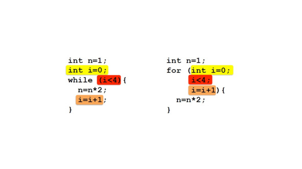 И ниже приведена структура цикла for, которая повторяет выражения четыре раза.