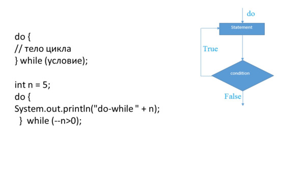 Этот цикл всегда выполняет тело цикла хотя бы один раз, так как его условное выражение проверяется в конце цикла.