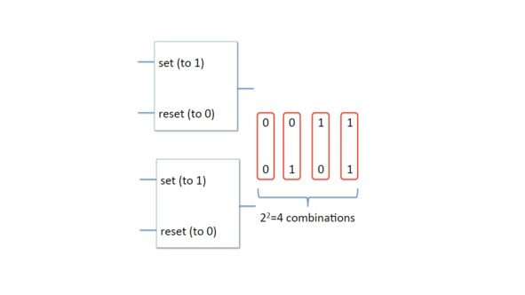 Теперь, если у вас есть два триггера, мы можем сохранить два бита.