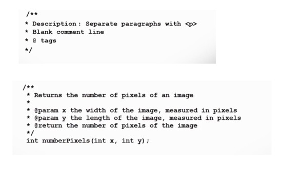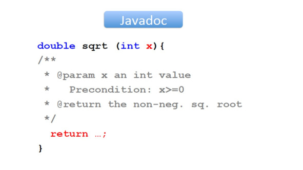 Давайте посмотрим на метод, который здесь указан, и вид информации, которая должна быть предоставлена для него в Javadoc.