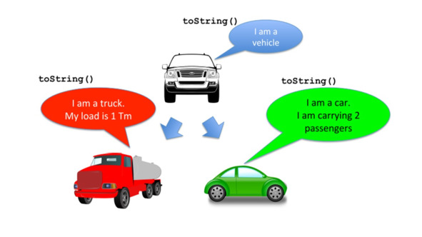 В этом примере метод toString суперкласса переопределяется в подклассе с помощью метода с тем же именем, и теми же параметрами, и возвращаемым типом, но другим телом метода.