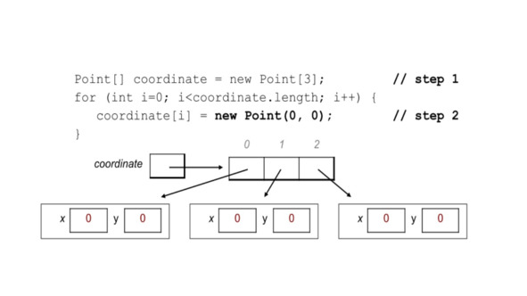 Затем, мы выполняем второй шаг с помощью цикла, в котором создается реальный объект класса Point для элемента 0, 1 и 2.