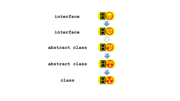 Тогда как абстрактный класс реализует абстракцию, показывая некоторую общую функциональность для семейства классов без ее конкретной реализации, интерфейс, например, как физический интерфейс в радио или музыкальном проигрывателе, демонстрирует сервис снаружи и скрывает реализацию, которую мы можем определить.