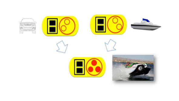 Например, мы можем определить амфибию как реализацию интерфейса автомобиля и интерфейса лодки.