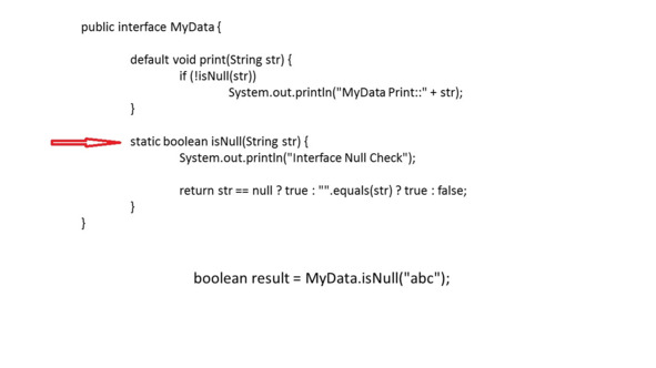 Теперь, статический метод интерфейса похож на метод по умолчанию, за исключением того, что мы не можем переопределить его в классах реализации.