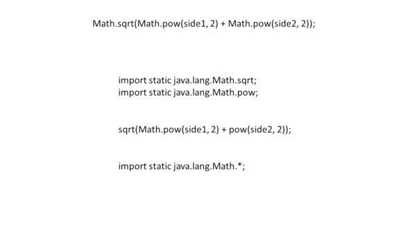 Например, в этом выражении, методы pow и sqrt являются статическими, поэтому они должны быть вызваны с указанием имени их класса – Маth.