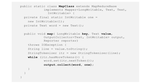 И, наконец, необходимо реализовать хранилище для ввода map, для вывода map, которое совпадает с вводом reduce, а также реализовать вывод reduce.