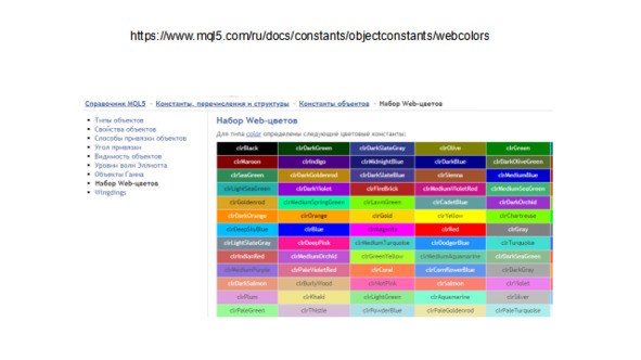 В справочнике MQL5 есть таблица Web-цветов для определения цвета графического построения.