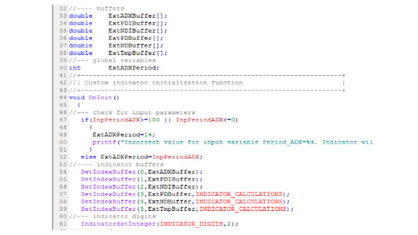 В функции OnInit () индикатора, как правило, объявленные в начальном блоке массивы связываются с буферами индикатора, определяя его выводимые значения, задаются цвета индикатора, точность отображения значений индикатора, его подписи и другие параметры отображения индикатора. Кроме того, в функции OnInit () индикатора могут получаться хэндлы используемых технических индикаторов и рассчитываться другие используемые переменные.