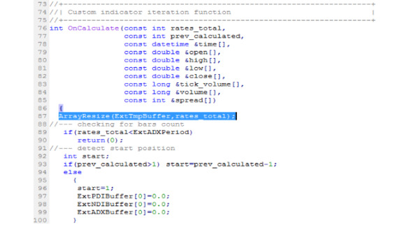 В функции OnCalculate () собственно и производится расчет значений индикатора, заполняя ими объявленные в начальном блоке массивы, которые в функции OnInit () индикатора были связаны с буферами индикатора, данные из которых берутся терминалом для отрисовки индикатора. Кроме того, в функции OnCalculate () могут изменяться цвета индикатора и другие параметры его отображения.