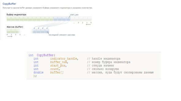 Если же мы хотим скопировать только одно новое поступившее значение, функция CopyBuffer определит размер принимающего массива как 1, и нужно будет использовать этот принимающий массив как еще один массив-посредник, из которого уже записывать значение в промежуточный массив индикатора. И в этом случае просто функцией ArrayResize для принимающего массива проблему не решить.