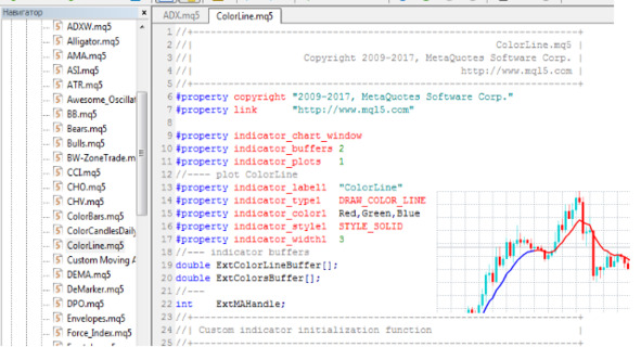 С помощью MetaEditor можно создавать торговых роботов, технические индикаторы, скрипты, графические панели управления и многое другое.