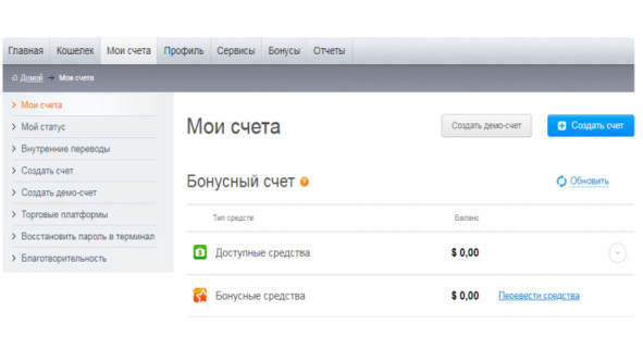 Forex Club предлагает два типа счетов: