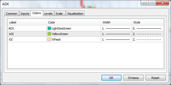 Таким образом, каждая диаграмма индикатора ADX – это линия.