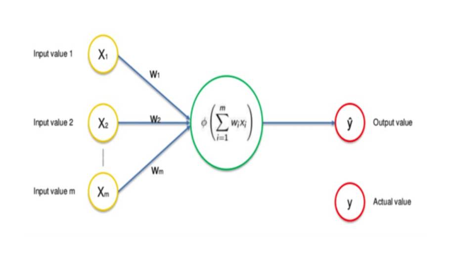 Это однослойные нейронные сети, состоящие из входных узлов, подключенных непосредственно к выходному узлу.
