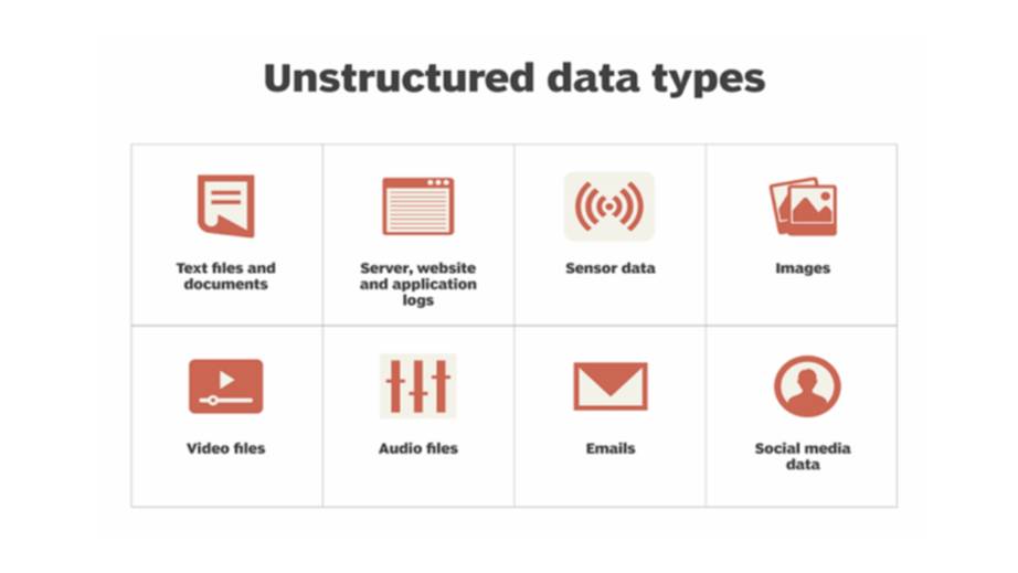 Неструктурированные данные – это данные, поступающие в основном из Интернета, где они не являются табличными, они не в виде строк и столбцов, а в виде текста, иногда это видео и аудио, поэтому вам придется использовать более сложные алгоритмы для обработки этих данных.