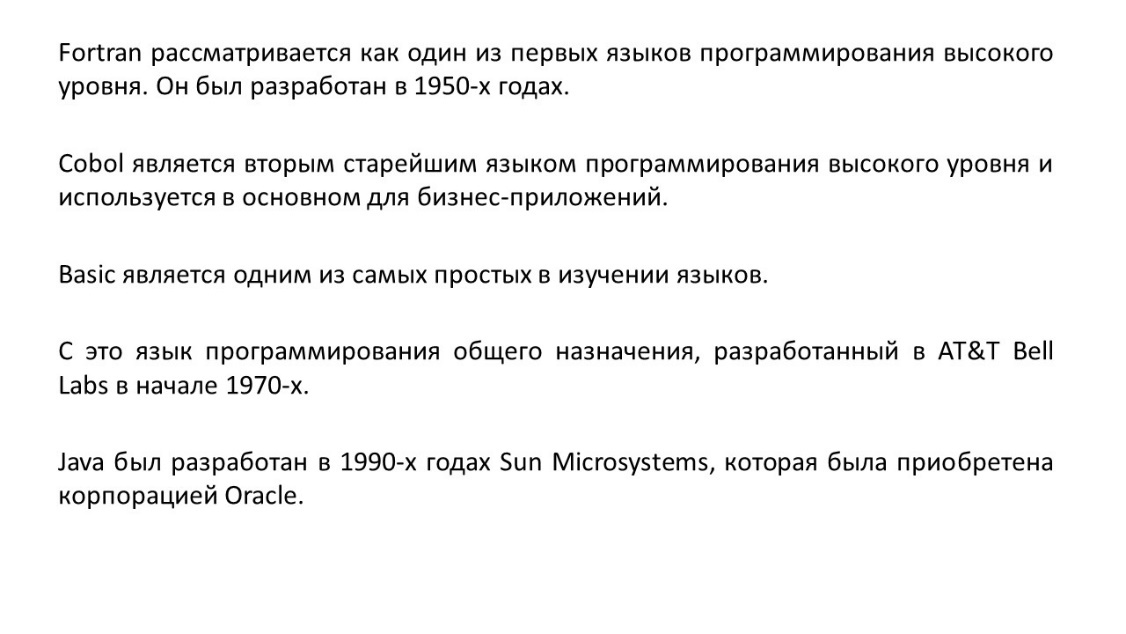 Языки программирования высокого уровня используют возможности языка ближе к человеческим языкам, например, к английскому, чем машинному языку.