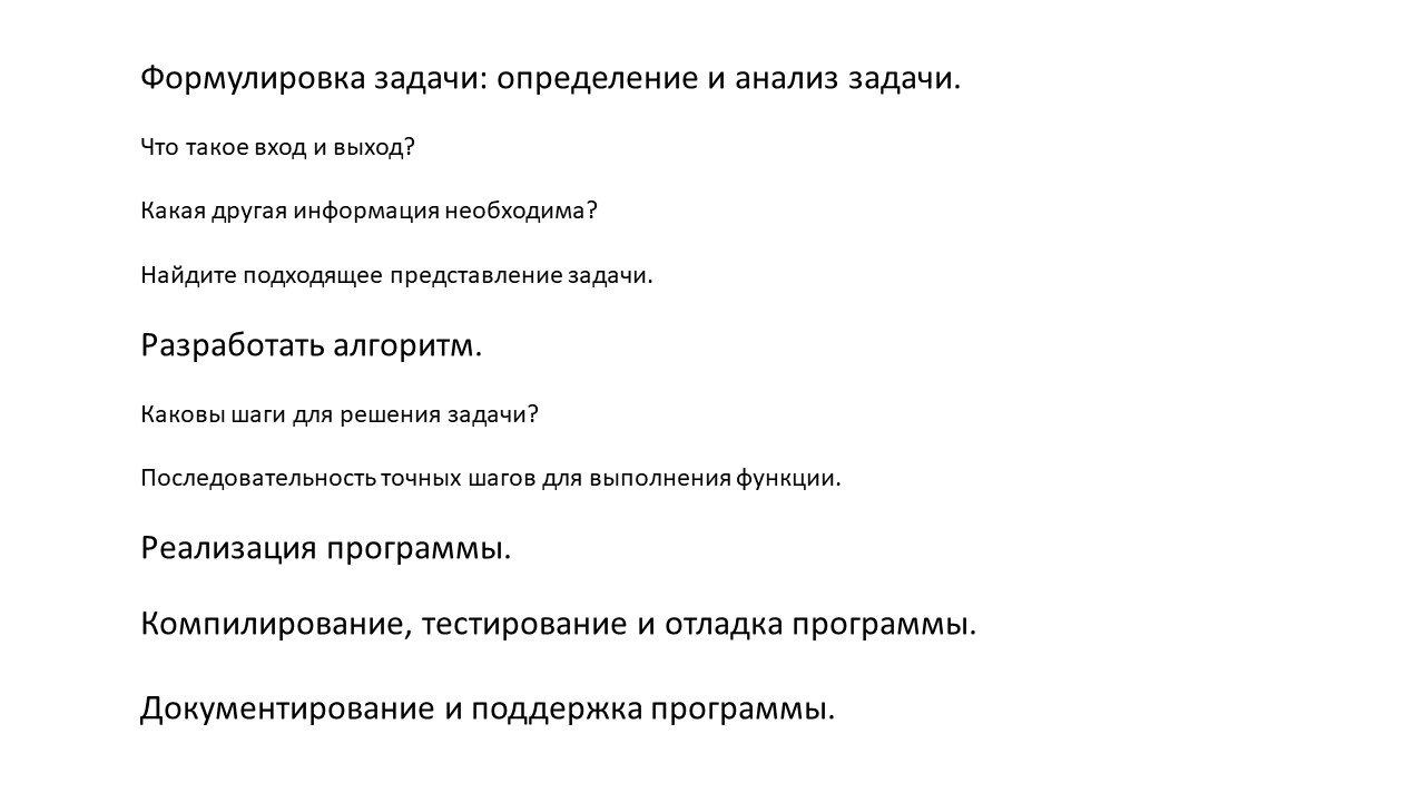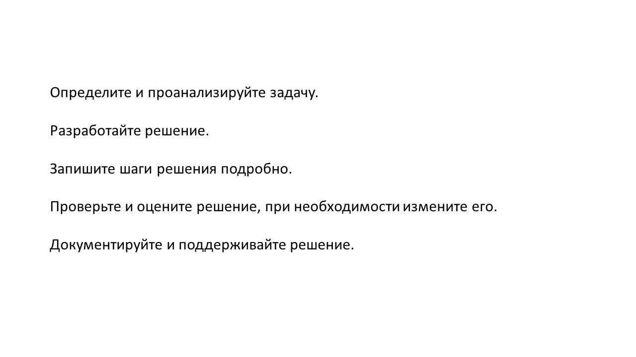 Выше были приведены подготовительные шаги перед тем, как вы на самом деле реализуете программу или начнете программировать решение задачи.