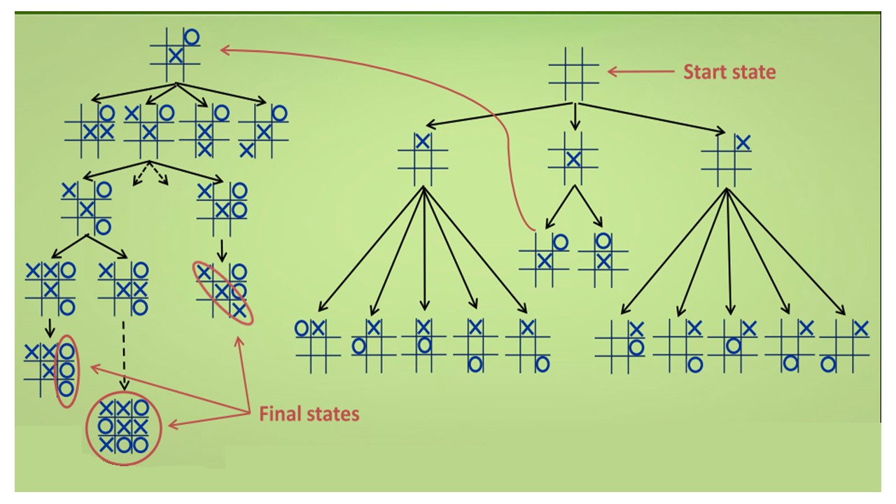 На этой диаграмме видно, что игра начинается с пустой сетки 3x3, мы назовем это начальным состоянием.