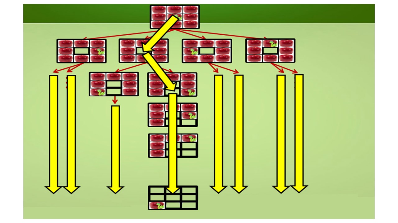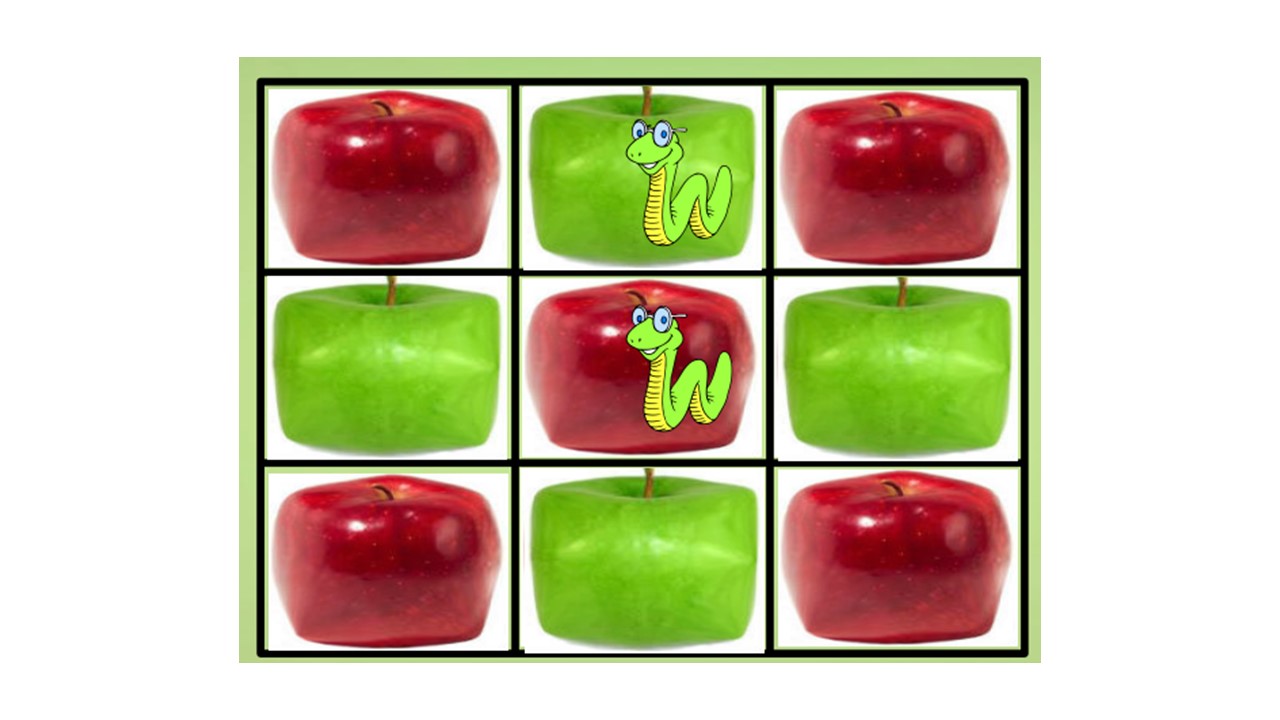 Как и в игре крестики-нолики, задача здесь начинается с матрицы 3х3, но в этой задаче, клетки занимают квадратные яблоки.