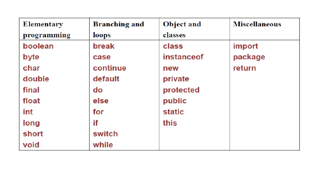 Для названий доменов в Интернете, .gov зарезервирован для государственных организаций, .edu зарезервирован для учебных заведений. Точно так же, и Java использует некоторые зарезервированные слова.