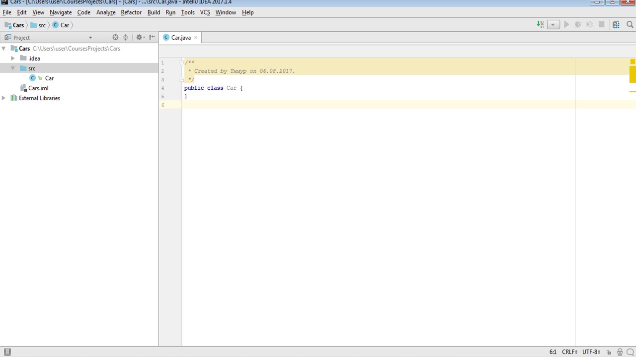 Теперь давайте вернемся к среде IntelliJ IDEA, чтобы увидеть, как этот класс автомобилей работает.