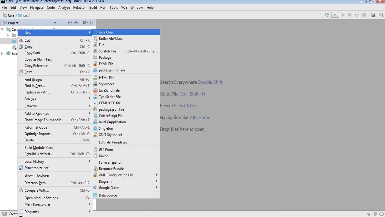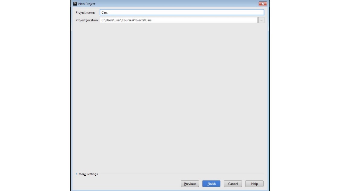 Давайте просто назовем проект «Cars».